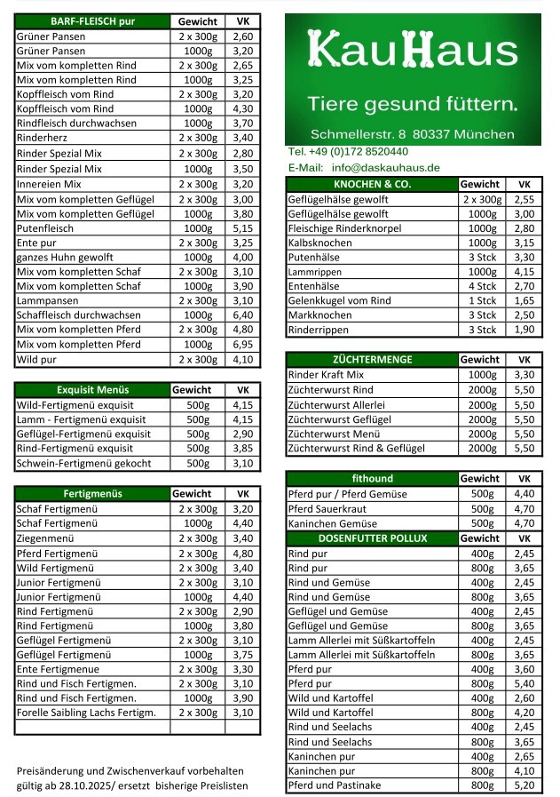 Das KauHaus bietet hochwertige, gesunde Ernährung für Haustiere, insbesondere Hunde und Katzen. Unser Sortiment umfasst Trockenfutter, Dosenfutter, Frischfleisch und Nahrungsergänzungsmittel für eine ausgewogene Tierernährung.